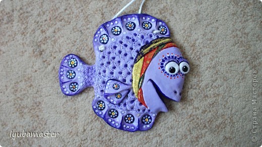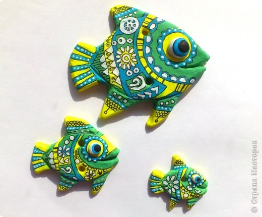 /www.toysew.ru/wp-content/uploads/2015/09/rybka8.jpg" target="_blank">http://www.toysew.ru/wp-content/uploads/2015/09/rybka8.jpg 600w" width="600" />По мотивам работ художника Дэна Морриса в стиле примитив интересно получаются поделки из соленого теста рыба-луна и рыба-солнце. Раскрашиваются они акриловыми красителями с помощью кисточек разной толщины. Сюжет можно придумать любой.