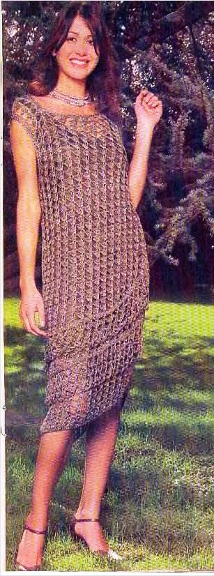 Оригинальное платье связанное крючком красивым узором сеточкой украсит самое простое платье-дублер.