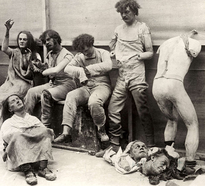 Расплавленные и поврежденные восковые фигуры музея Мадам Тюссо. Лондон, 1930 год.