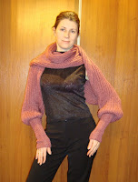 Удобная вещица. Можно использовать готовый шарф, сшить по краю нужной длины и довязать манжеты.