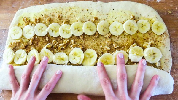 Пышные и ароматные булочки с корицей из дрожжевого теста… Кто же откажется от такого лакомства! Мы предлагаем их дополнить ломтиками спелого, сладкого банана и молотыми орехами. Поверьте, это что-то волшебное! А особый вкус этой выпечке придает глазурь на основе топленого масла.