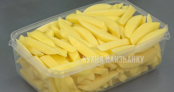 Еще я замораживаю картофель. Бывает, что нужно уехать, а везти с собой остатки картофеля не совсем удобно. Ну не выбрасывать же :) Поэтому нарезаю на вот такие брусочки, хорошо промываю в воде, выкладываю на чистое полотенце, просушиваю и отправляю в пластиковый контейнер подходящего размера.