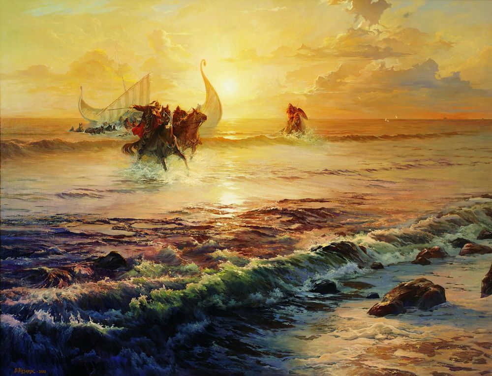 Раннее рассветное утро. Вдоль морского берега, разбрызгивая воду, мчится группа всадниц. Они заметили непрошенных гостей. В утреннем тумане видна греческая "дирема". Как знать - каких неприятностей можно ожидать от них в этот раз?