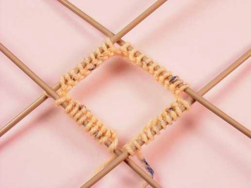 Вяжите туда и обратно на обычных спицах 1 ряд лицевыми петлями (изнаночная сторона).