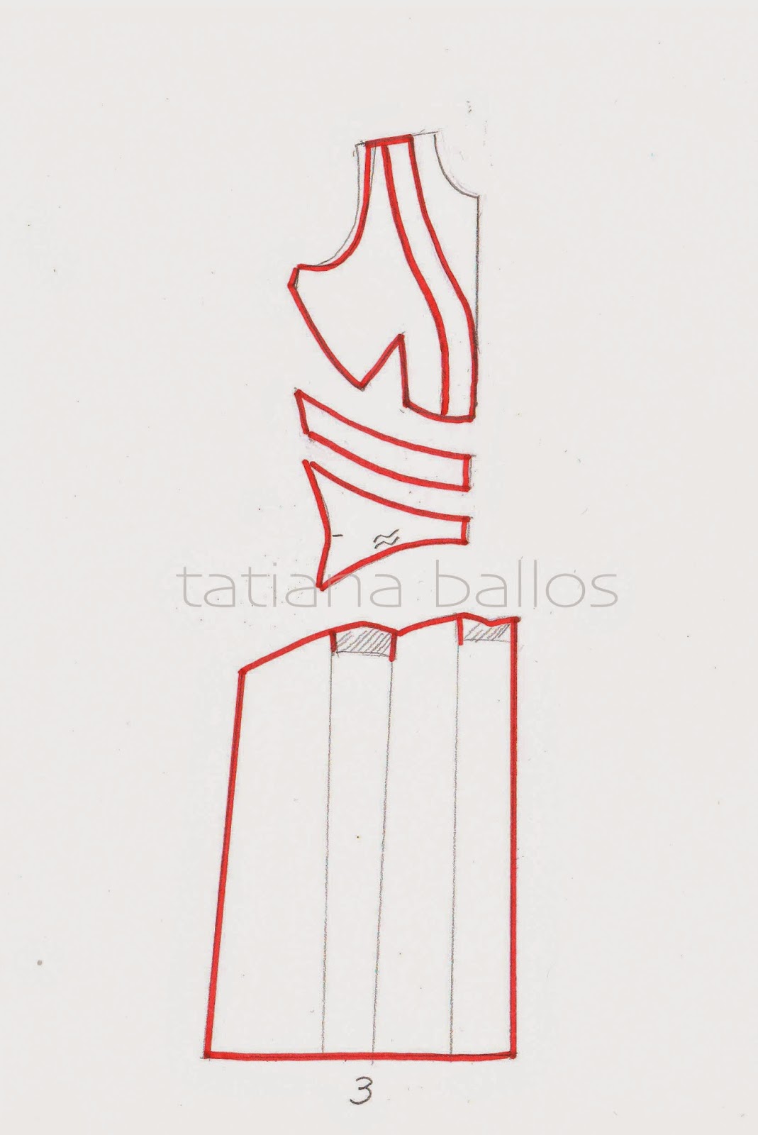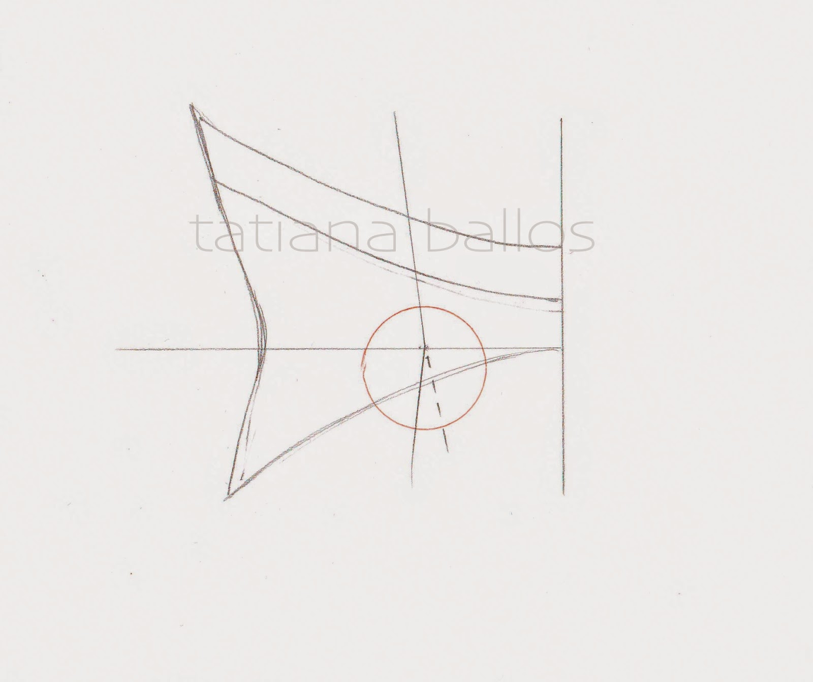 Теперь нужно заложить защипы и подкорректировать линию горловины.Такая вытачка может быть использована, как элемент отделки лифа. Она может служить защипом, из которого выходит бант; разделенная на несколько защипов, стачанных или заложенных, она образует веер у горловины.