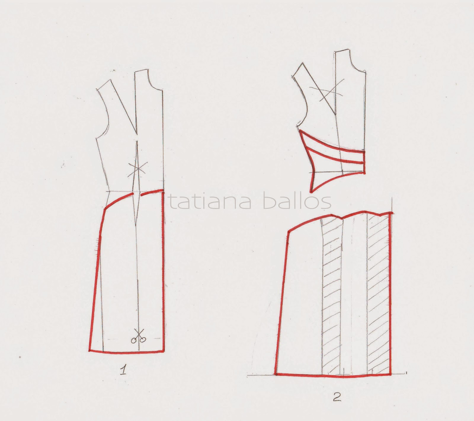 2. Отрезаем кокетку от лифа по намеченной линии (кокетка всегда кроится с закрытой вытачкой).