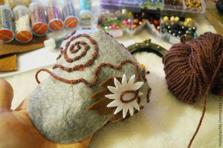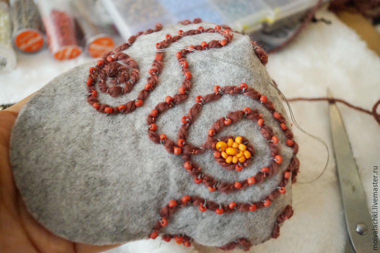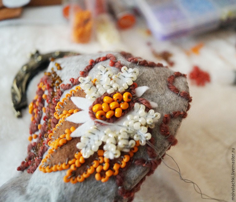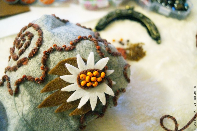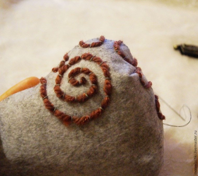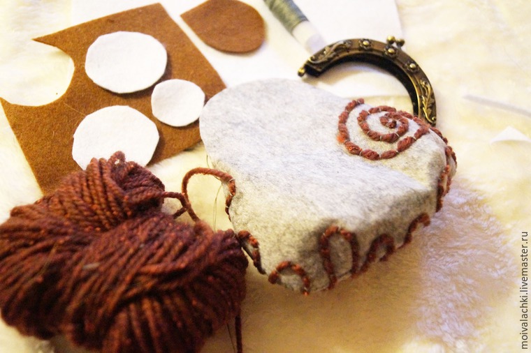 Last step is to cut a circle from the white felt(use a spool of thread to trace!) and attach a cute button for the eye.