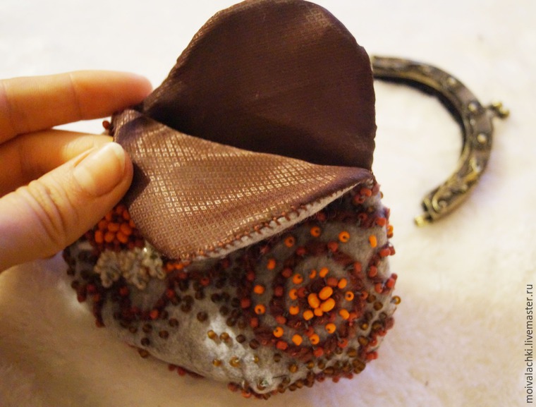 Fold in the edges and pin as you go. Getting the top corner folded in just right is difficuilt, but don't worry too much about it since you'll be covering that up with the bag straps.