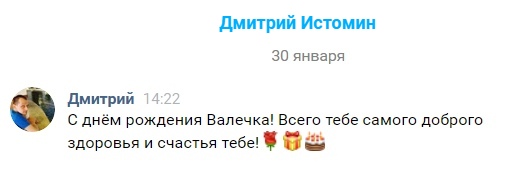 Валюша прими от меня искренние пожелания
