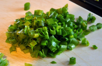 Шаг 11:Лук мелко нарезаем. Он может по-настоящему творить чудеса, ведь лук некалорийный, при этом связывает между собой и выводит из организма весь тот жир, который отложился не в нашу пользу и захватывает вместе с ним токсины и шлаки.