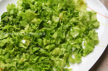 На листья салата выложить замешанный салат,а поверх него положить грибы . Салатик понравился всем,и эстетично выглядит ,вкусно и полезно.