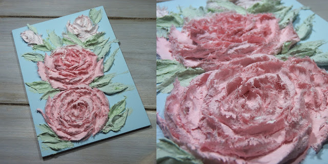 Вторая – было бы здорово, если бы сработала, и я успокоилась даже, несмотря на высокую цену материала. Но, не все так просто, увы. Для каких-то декораторских приемов она идеальна, но для создания объёмных цветов в сочетании с мастихиновой живописью не сработала: