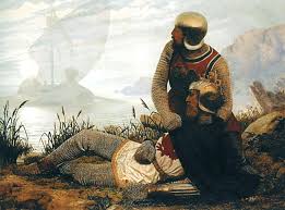 Много славных рыцарей погибло в этом сражении, был убит и вероломный Модред. Но он успел смертельно ранить короля Артура..