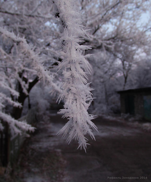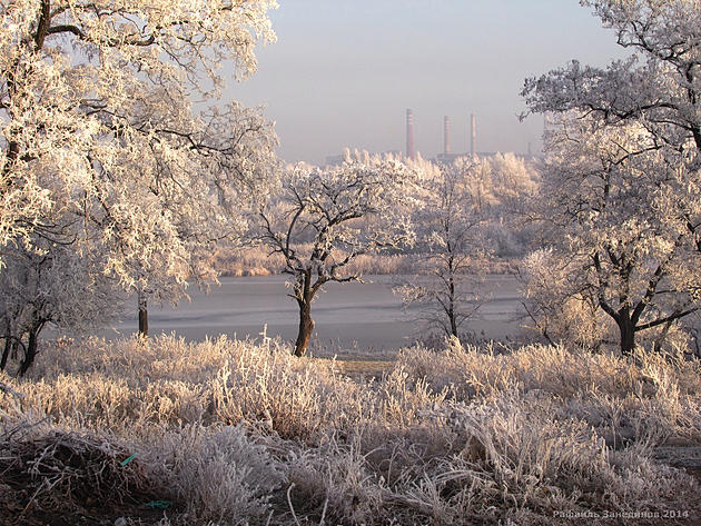 Зима в Донбассе не балует снегом, зато щедро одаривает туманами и дождями. Вот и нынешний Декабрь не исключение. Третью ночь подряд промозглая мглистая сырость. И настоящим чудом кажется иней, украсивший по утру улицу.