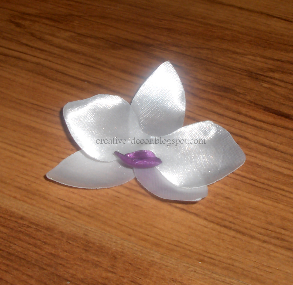 5. Потом приклеиваем фиолетовый лепесток. Вот так: