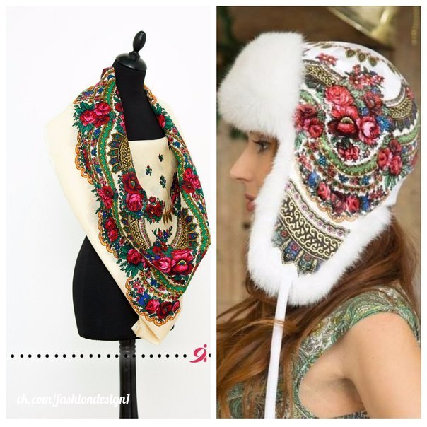 Шапка-ушанка из павловопосадского платка. |