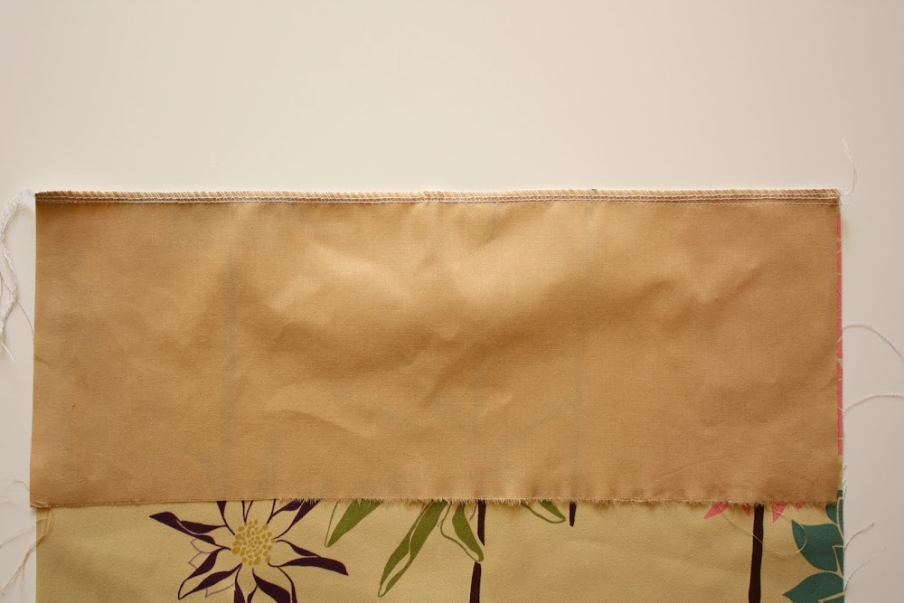 Пристрочите подкладочную ткань к верхней части основной ткани. Край