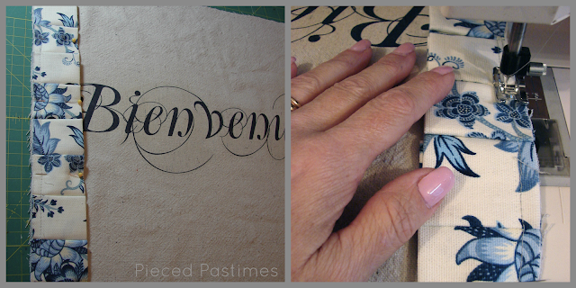 15. Приколите бейку по периметру органайзера. На полукруглых участках припосаживайте бейку. Дойдя до начала работы, конец бейки подверните под углом и обрежьте излишки.