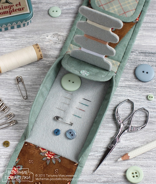 скорее даже не мини, а микро. Может использоваться когда угодно и где угодно, но делала я его с мыслями о том, что он составит компанию супер-обложке — в поездках швейный набор входит в мой арсенал всегда носимого с собой наравне с картой, путеводителем, фотоаппаратом, пластырем и средством от комаров.