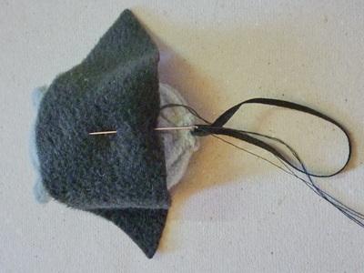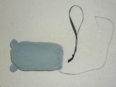 Пришиваем эту деталь с обратной стороны мышки, строго посередине спинки.