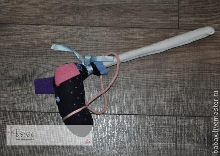 Второй этап, это набить носочек синтепоном и закрепить на палочке.
