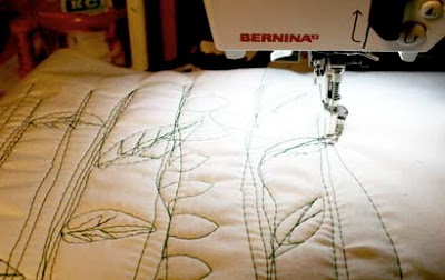 На наволочке явно не хватает зелени, то есть листочков, поэтому их также прострачиваем к наволочке строчкой для пришивания аппликаций.