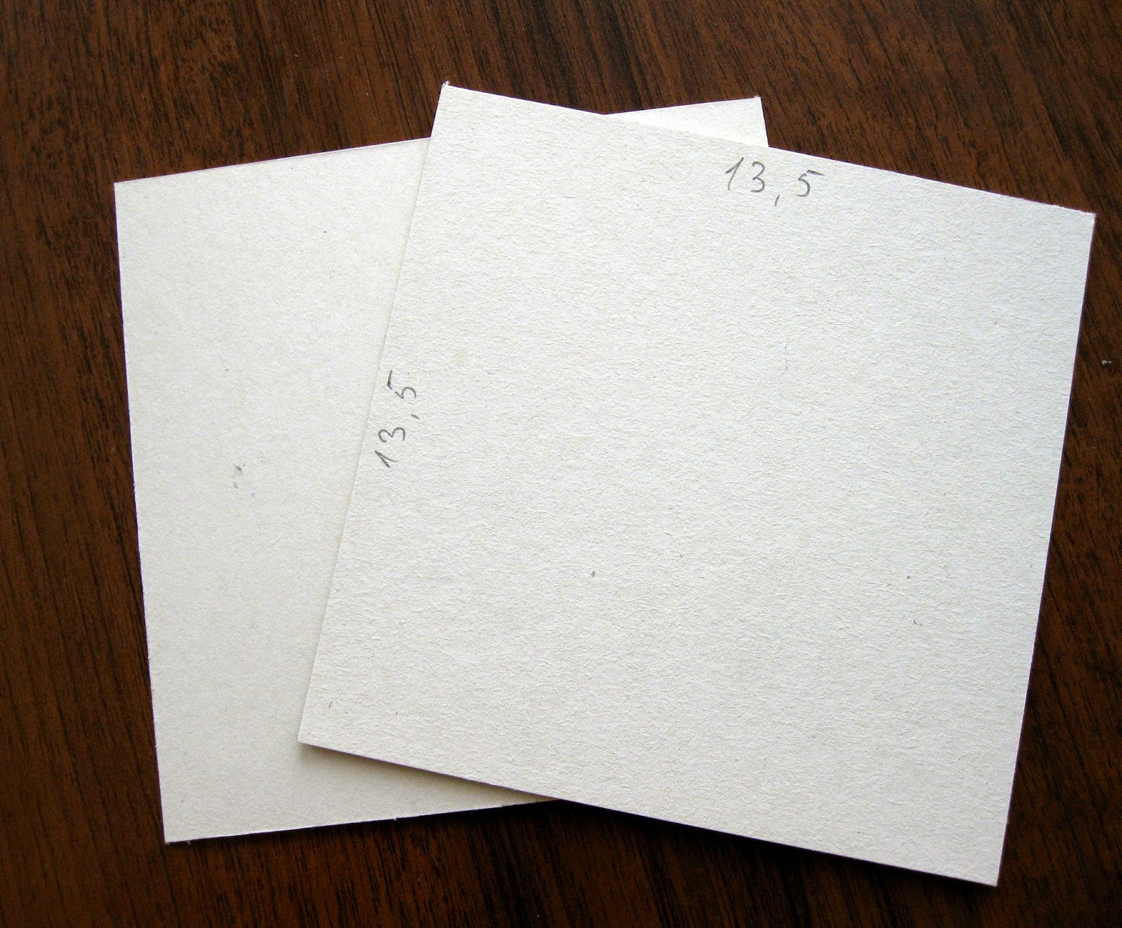 1.промазываем клеем и наклеиваем квадраты 11х11 на квадраты 13х13 отступая от краёв по 1 см.