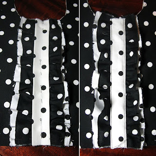 Присбориваем воланы. Легче всего сделать это так: проложите 2 широкие строчки на расстоянии 0,5 и 0,8 смот края, а затем потяните за верхние или нижние нити и стяните их до нужной длины. Равномерно распределите сборки.