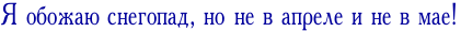![]() ![]() Я обожаю снегопад, Когда снежинки в хороводе Чуть слышно на тебя летят. Хоть вальс и танго нынче в моде, Я обожаю снегопад! Я обожаю снегопад За нежность снега и за мягкость. Приносит он такую радость! Я обожаю снегопад! Я обожаю снегопад Наверное, за чистоту снежинок, Красиво так, непостижимо. Я обожаю снегопад! Я обожаю снегопад, Когда весь мир в снежки играет. Я обожаю снегопад, Но не в апреле и не в мае! /Ирина Расшивалова/ |