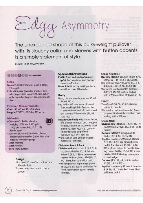 <a href="https://www.liveinternet.ru/users/5937008/post439610520/">Creative Knitting / Comfy & Cozy - 2018</a><br/> Популярный журнал по вязанию. В каждом выпуске журнала вы найдёте современные, трикотажные модели и аксессуары. Красивый дизайн журнала, множество блестящих идей для вязания одежды и аксессуаров, вдохновят Вас на создание новых вещей для вашего гардероба. Подробные инструкции, выкройки и схемы, помогут вам выполнить любой из понравившихся проектов. В выпуске предложены уютные, комфортные модели кардиганов, пуловеров, накидок и аксессуаров. ДЛЯ УВЕЛИЧЕНИЯ ЩЁЛКНИТЕ ПО ВЫБРАННОЙ ФОТОГРАФИИ!!! ... <a href="https://www.liveinternet.ru/users/5937008/post439610520/">Читать далее...</a>