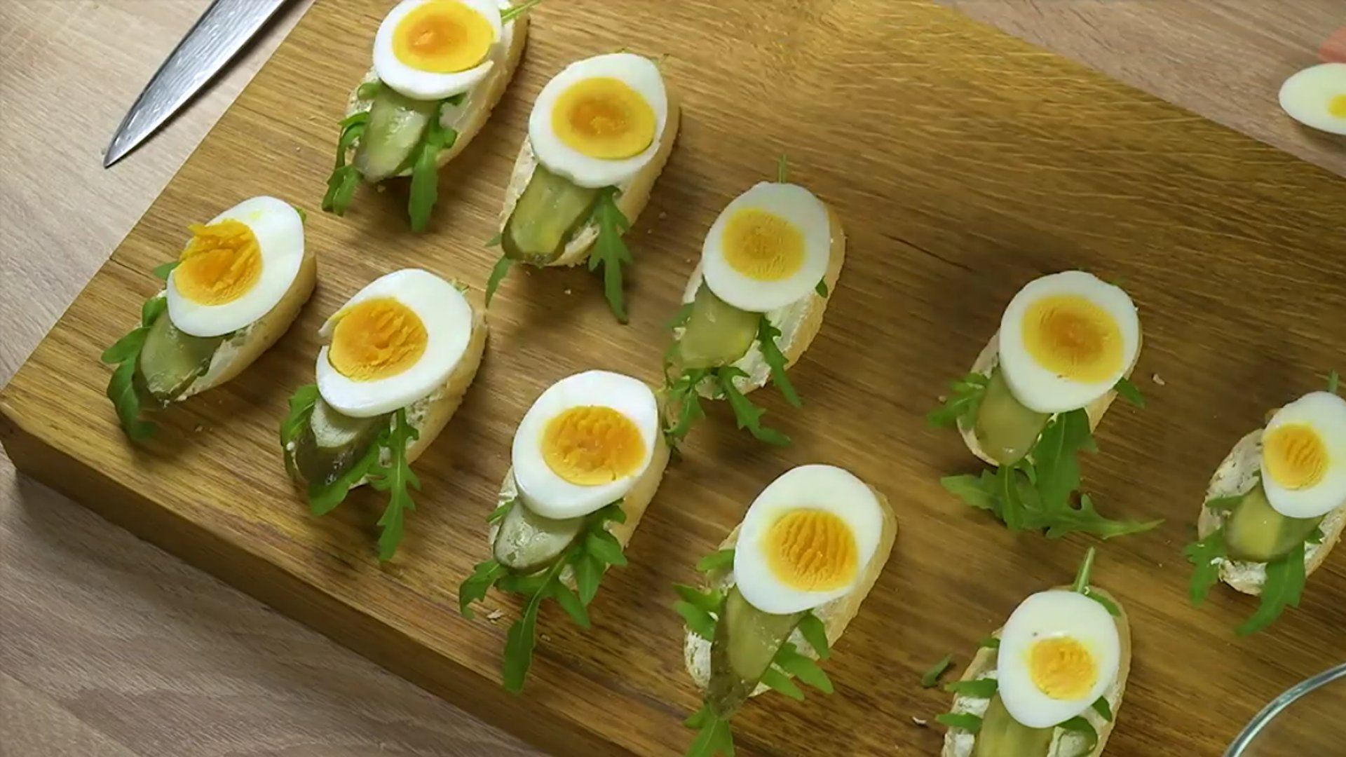 4. Яйца также нарезаем на тонкие пластинки. И выкладываем следующим слоем, так как показано на фото, немного сместив их к низу бутерброда.