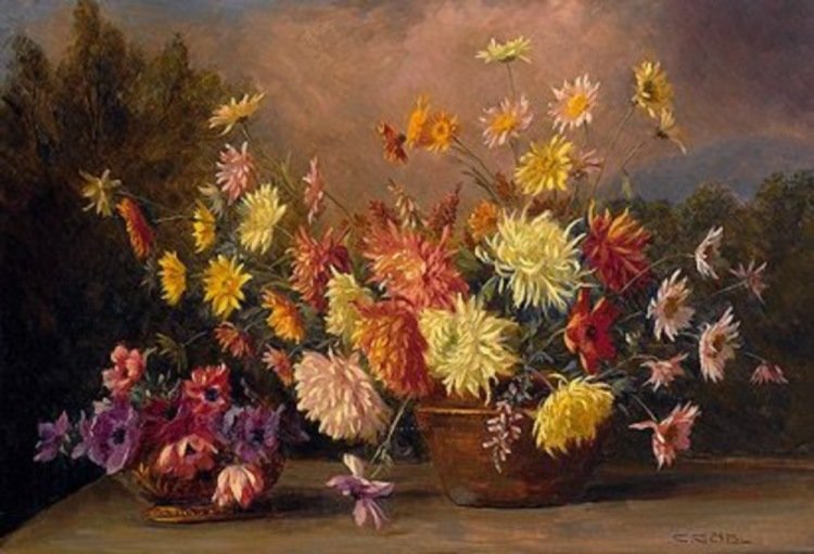 Художник Camilla Göbl–Wahl (Камилла Гобл-Вал) – немецкая художница мастерица натюрморта, которая питала необыкновенную страсть к изображению цветов. Она родилась в столице Австрии – Вене в 1871 году. Талант юного дарования развивался самостоятельно вплоть то 1893 года.