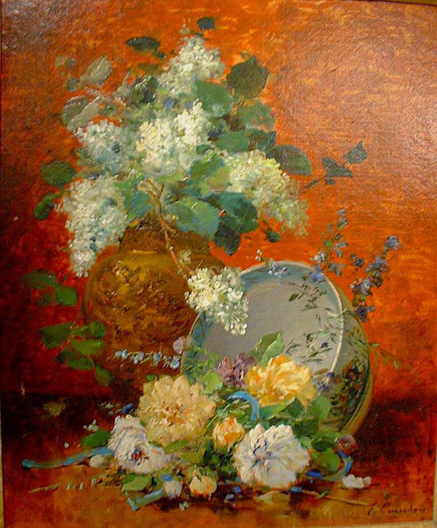 Живописи обучался у таких мастеров как Ferdinand Duboc и Alexandre Сabanel. Насыщенные цветом натюрморты, размашистая манера масляного письма отражают сильное влияние импрессионизма на творчество Eugene Henri Cauchois. Эжен часто выставлял свои работы в Парижском Салоне и многократно бывал награждаем различными медалями и премиями. Eugene Henri Cauchois был известен своими многочисленными цветочными натюрмортами, хотя писал и писал и пейзажи, но не часто. Художник писал в жанре натюрморта вплоть до своей смерти 11 октября 1911 г.