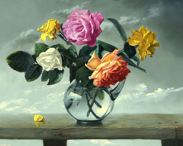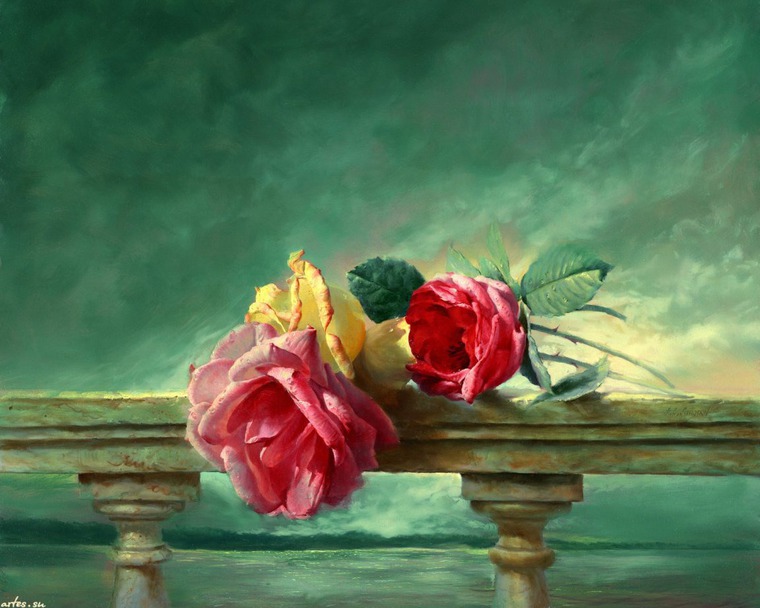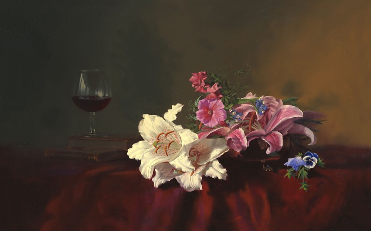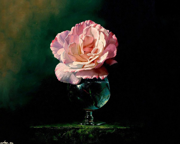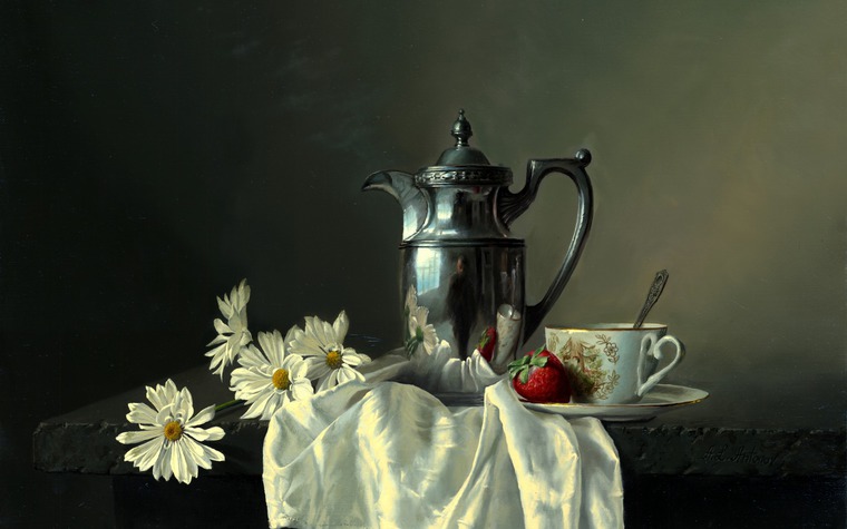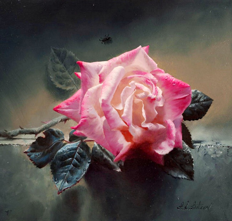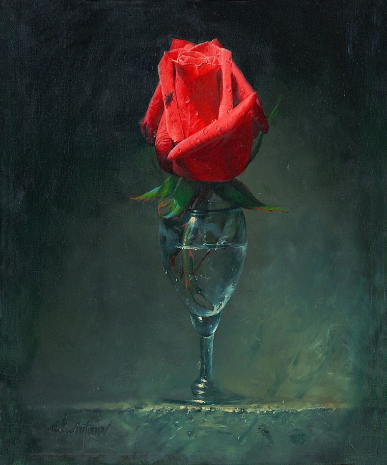 Его "тихая жизнь" вполне может соперничать с картинами старых мастеров, теми что до сих пор украшают стены старых дворянских усадеб. Сюжеты те же, манера письма ничуть не хуже, чувствуется, что человек долго изучал творчество старых мастеров натюрморта, постигал основы создания композиции и постановки света. Рисовать натюрморты не так уж и просто, как считают многие. Можно сложить в кучку цветы, фрукты, кинуть пару старых книг, но... но вот красоты и "тихой жизни" может и не получиться. В чем же секрет хороших натюрмортов? У каждого мастера он свой, так Алексей Антонов считает, что не надо торопиться во время работы и не стоит забывать об основах классической живописи.