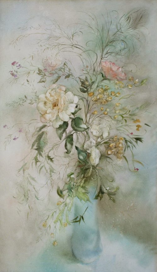 Цветочные натюрморты. Комментарий эксперта галереи "Арт Онлайн Украина": Творчество художницы посвящено цветочному натюрморту, воплощенному посредством масляной живописи на холсте. Это композиции из цветов в вазах или же простые букеты цветов и трав. Натюрморты Петренко Светланы не отличаются разнообразием композиционных решений. Она не вводит в композицию никаких дополнительных предметов, кроме ваз с цветами, которые по обыкновению располагаются в центре формата. Характерно отсутствие контрастов, как тона, так и цвета. Колориту присуще преобладание теплых и разбеленных оттенков. Особенно богата палитра охр, коричневых и травяных зеленых. Письмо гладкое, лессировочное. Художница также избегает выразительных контуров и четко прорисованных линий. Более того она растворяет очертания изображенного списывая и скрадывая его границы. Букеты смотрятся будто бы изображены окутанными некой дымкой. Мягкость, текучесть, светлая тональная гамма и манера письма создает ощущение акварельности в масляных натюрмортах Петренко Светланы, которые могут стать неброским, гармоничным дополнением различных интерьеров.