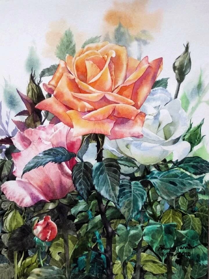 Акварели художника из Бангкока Kitipong Ti просто завораживают – нежные лепестки цветов поражают своей реалистичностью и, одновременно, характерной для живописи Востока, традиционностью.