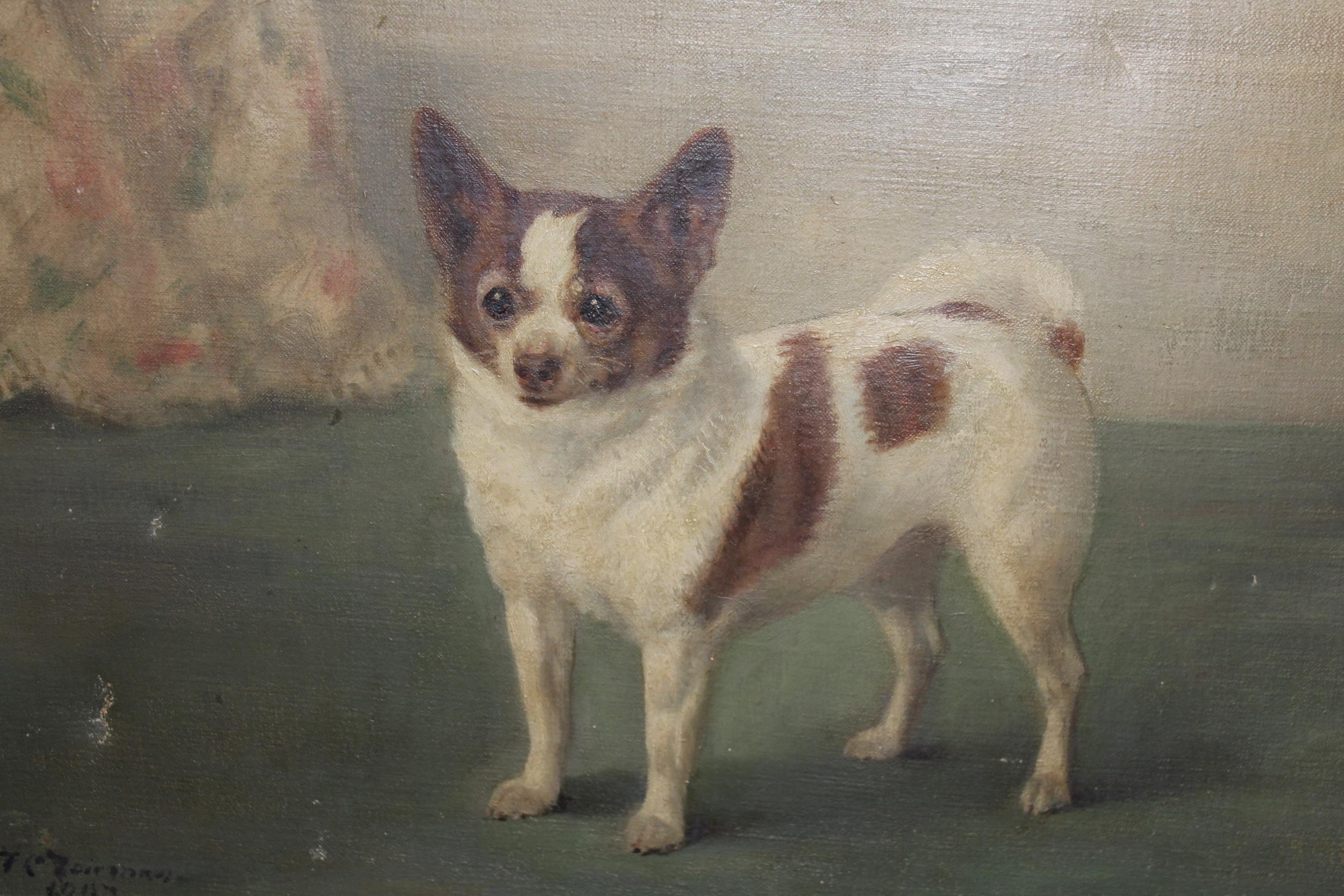 Картина маслом на холсте «Портрет английского той-терьера и аффенпинчера» Фрэнсис К. Фэйрман (1836-1923) под названием «Общая кость.
