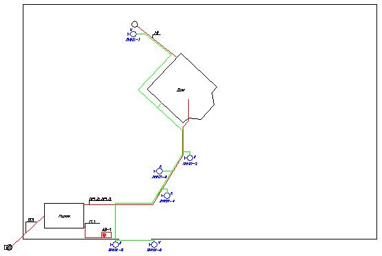 ситуационный план расположения объектов подключения (план участка, строений и соединяющих их линий электропередачи от места, откуда разрешено подключение, например опоры ЛЭП). Пример такого ситуационного плана приведен на рис. №1;