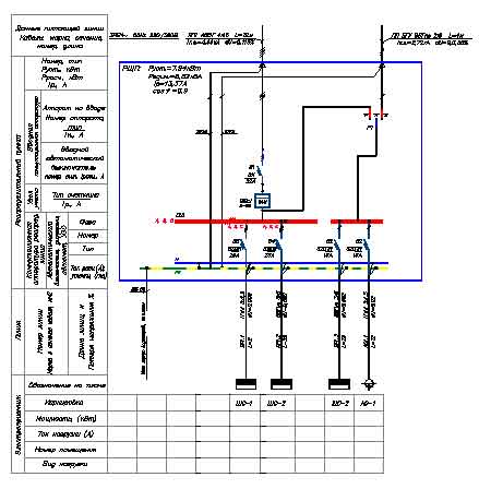 схему внешнего и внутреннего электроснабжения с указанием типов защитной аппаратуры, сечений и марок кабелей и проводов, расчетных токов, приборов учета электроэнергии, места присоединения к питающей сети;