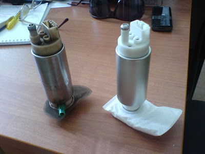 Посмотрев на предохранитель реле и поняв, что он целый, пошел за ключем на 17, чтобы отвернуть входящий бензопатрубок на рампу. После включения зажигания тут то все стало и ясно - не тикёт! Хм - подумал я, - так ведь я летом поменял безвременно почивший родной бензонасос американской марки Walbro на немецкий ATS от Дэу Эсперо/Нексия (история тут - http://wwwboards.auto.ru/ssang-yong/42856.html)