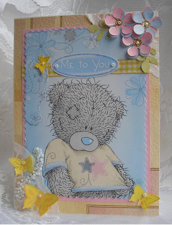 Давно смотрю на конкурс "Мишка, мишка, где твоя улыбка" - работа с обязательным присутствием мишки Тедди. У меня этих мишек целая коробка в разных видах, разной величины, и все сериями - календари, детские карты, салфетки... И все-же вчера не выдержала, достала картинки и сделала открыточку из коробки от шоколада: