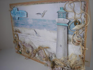 Перебрала несколько скрап-наборов в поиске нужного мне мотива. Хотелось показать, что как бы ни манило море, но дом - это тот маяк, который всегда укажет верное направление в жизни, и то, что дома всегда ждут)