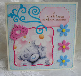 Как уже написала в предыдущем посте, сделанная открытка с Тедди мне не понравилась. Я достала новые картинки, посмотрела, как девочки вписывают картинки в работы, и сотворила такое вот чудо: