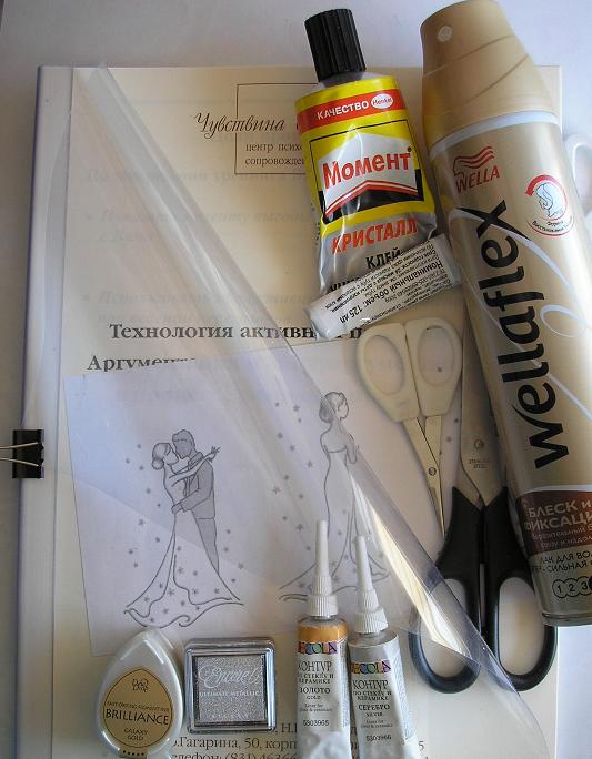 - прозрачный пластик (у меня - от корочки обучающего буклета с курсов, можно использовать прозрачные пластиковые папки-уголки)