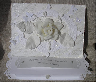 В выходные наконец-то  сделала белоснежную упаковку для подарка. Попросила подруга, которая в эти выходные со все семьей приезжала на свадьбу родственников, останавливались у нас, чему я очень рада.