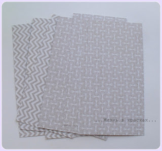 Разрезаем листы скрапбумаги подходящего цвета (у меня серый) размером 20*10. Для меня этот размер оказался подходящим, тем более, что я планирую вклеивать фото размером 7,5*5 (половинка 10*15).