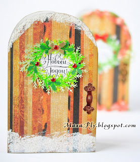 Снова тонируем края открытки. Мы получили заготовку дверок, которую можно по-разному декорировать. Я предлагаю сделать веночек и по краю пустить серпантин.