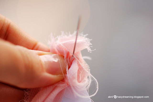 и начинаем пришивать с верхушки елочки, делая небольшой стежок