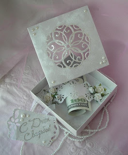 Мне понравилось делать коробочки для дарения денег) С резной крышкой! По такому принципу я делала новогоднюю коробочку, и вот - новое применение этой идеи)