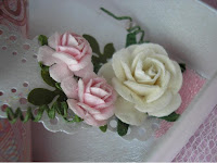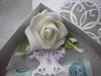 Плюс к предыдущим материалам - розы из фоамирана, тычинки, фатин. Тычинки и полужемчуг нежно-лилового цвета.